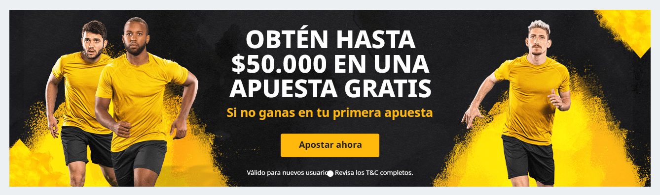 Dicho bono de bienvenida es una de las promociones más atractivas de este sitio de apuestas. Consiste en el 100 % del primer depósito hasta un máximo de $50.000 pesos colombianos. Se puede usar en las apuestas deportivas y en los juegos de casino.